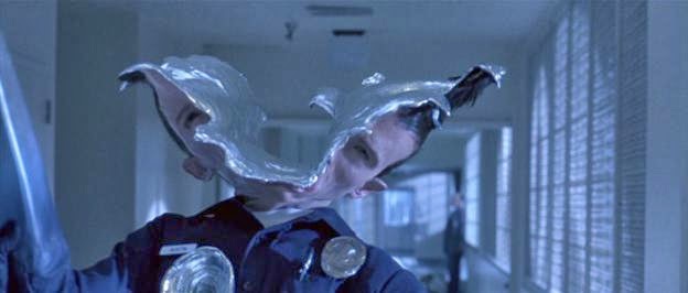 Para quem não lembra, o T-1000 conta com um esqueleto de metal líquido capaz de tomar qualquer forma, ou adaptar-se a qualquer organismo: objeto, animal ou pessoa. Sua natureza líquida é praticamente imune ao impacto de tiros, balas ou danos mecânicos.